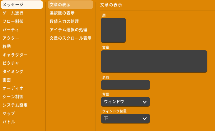RPG MAKER WITHのイベントコマンド「文章の表示」の解説です。基本的な機能の概要や設定方法、具体的な活用例をまとめています。