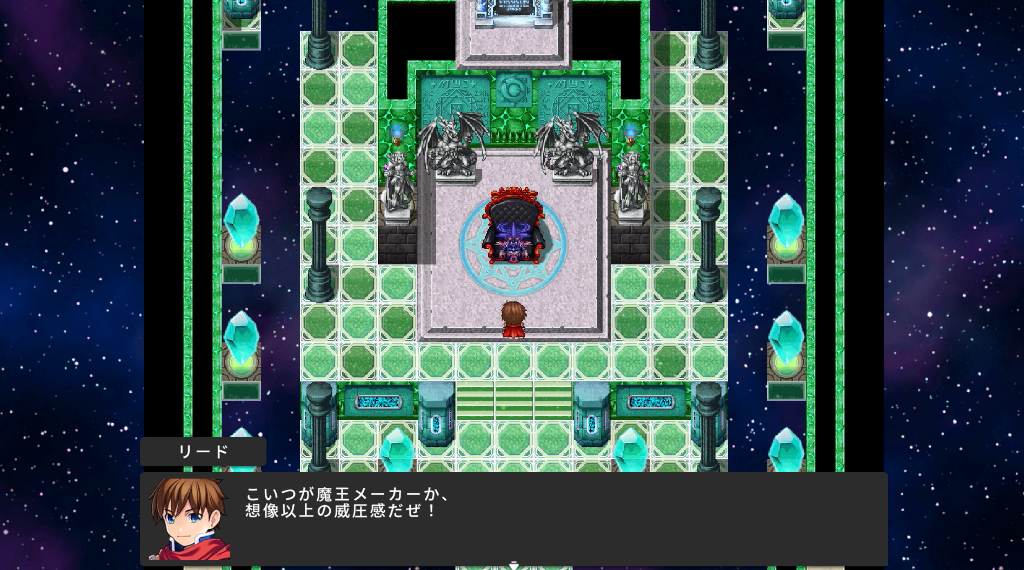 ただし、RPG Maker WITHの場合は制作者の名前などエンドロール用のテンプレートを基軸に設定した内容を文章のスクロールのように表示する「エンドロールの開始」も用意されています。