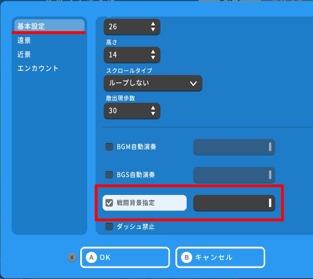 基本設定項目に「戦闘背景指定」の項目があります。この項目をクリックすることでこのマップでの戦闘における背景が指定されます。